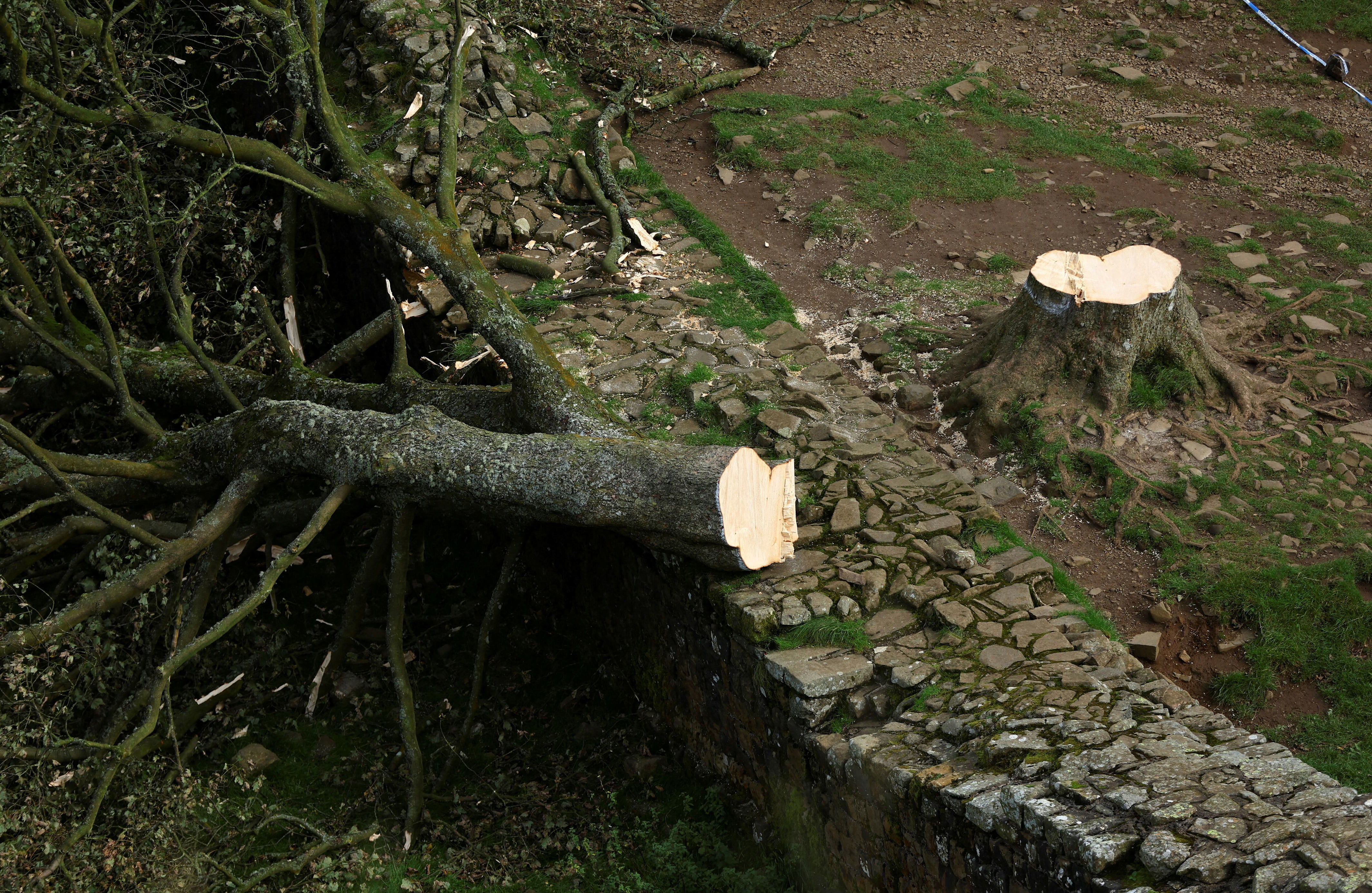 Un vídeo muestra el momento en que dos vándalos talaron el famoso árbol 'Sycamore Gap'
