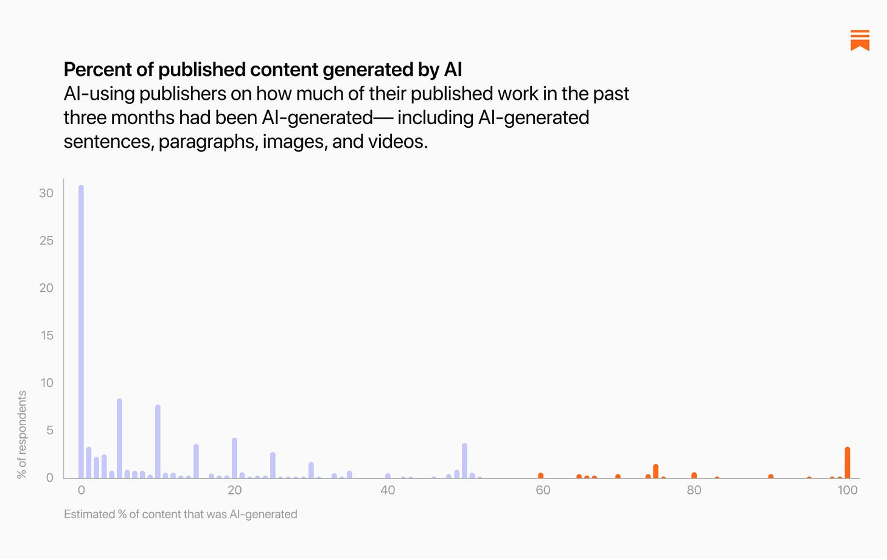 ➭ El 45% de los autores de Substack hace uso de la IALos usos principales son la investigación, la generación de ideas y la asistencia en la escritura. El uso para generar textos es muy bajo. Substack ha publicado esta semana un informe sobre el uso de la inteligencia artificial por parte de los autores de newsletters que publican en esta plataforma. Para la realización del estudio ha encuestado a 2.000 autores -incluyendo escritores, artistas, podcasters y creadores de vídeo de todo el mundo-, a los que ha preguntado si están utilizando la IA, cómo y por qué. Entre los que han respondido:
