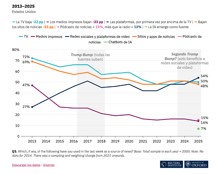 ➭ ¿Qué pueden aprender los medios de los influencers de noticias?La periodista y creadora Sophia Smith Galer lanza la app Sophiana, que crea guiones periodísticos para TikTok e Instagram con ayuda de la IA Un dato ofrecido recientemente en el Digital News Report 2025 del Reuters Institute muestra que las redes sociales y las plataformas de vídeo se han convertido, por vez primera, en la fuente más utilizada por los estadounidenses (54%) para consumir noticias, superando a la televisión (50%) y a los sitios y apps de noticias (48%). Este dato ha disparado -todavía con más intensidad- un gran número de alarmas en el sector, y ha puesto de relieve, todavía con más contundencia, el creciente papel que están jugando los llamados influencers de noticias. Una buena muestra de esto la encontramos en el número de primavera/verano 2025 de la revista Nieman Reports, en cuya portada se puede leer un contundente titular: TikTok Boom! Esto se dice en la presentación del número (traducido al español):