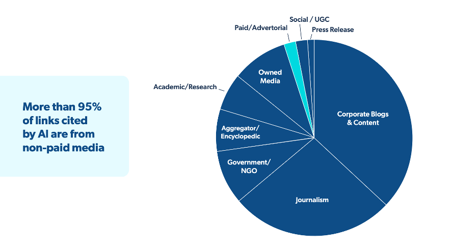 ➭ Estudio de Muck Rack sobre las fuentes más citadas por la IA en sus respuestasMuck Rack acaba de publicar un interesante informe en el que analiza cuáles son las fuentes más citadas en sus respuestas por tres de las principales herramientas de IA generativa: ChatGPT, Gemini y Claude. En el estudio se han analizado más de un millón de enlaces, que se han agrupado en las siguientes categorías: