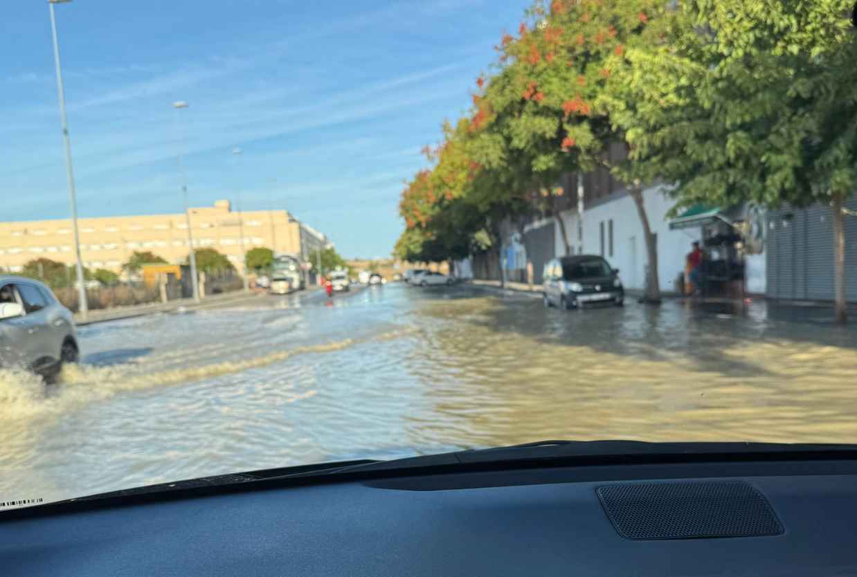 Totalmente inundada: un auténtico río de agua en una calle de la zona Sur de Jerez