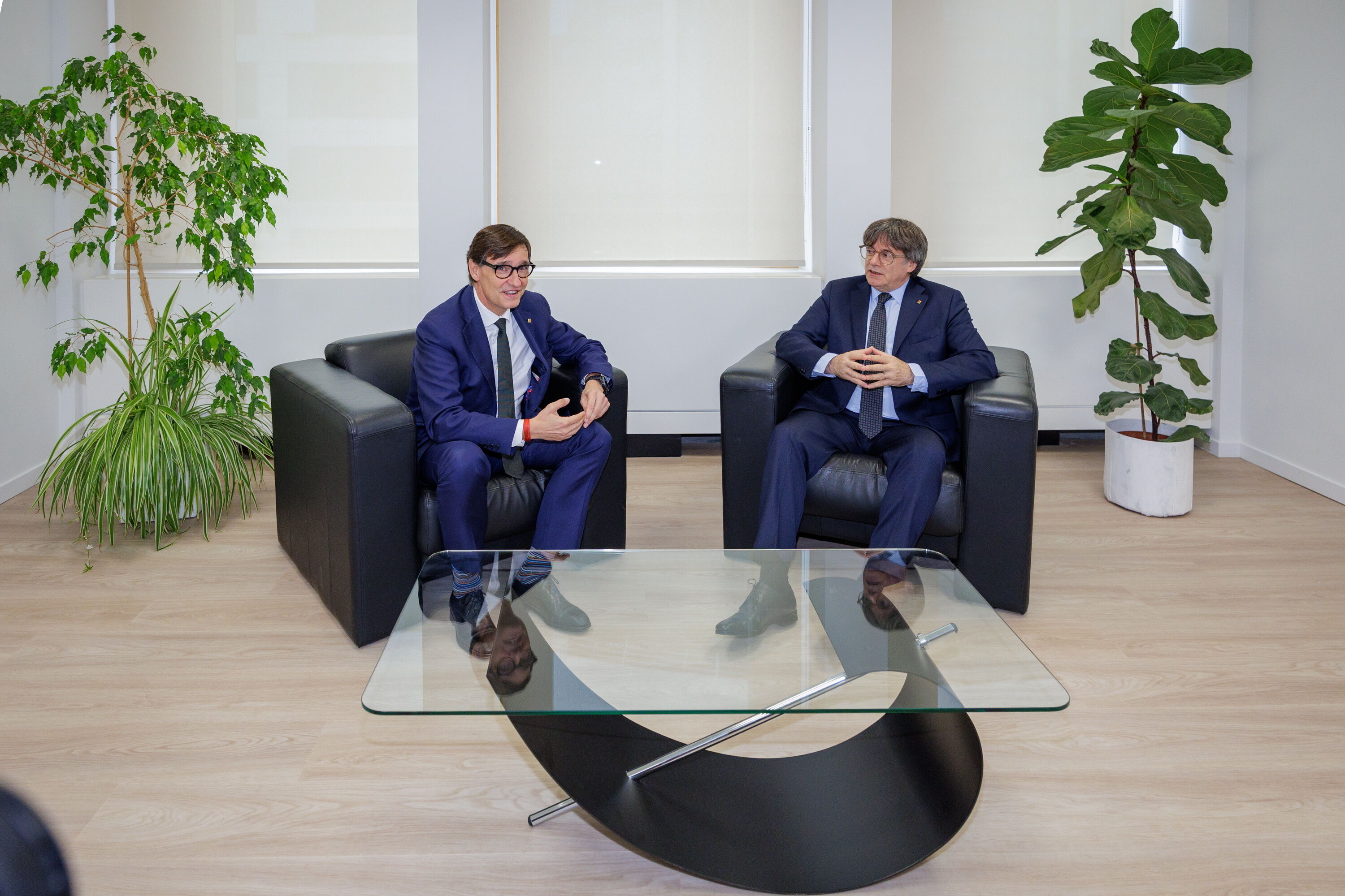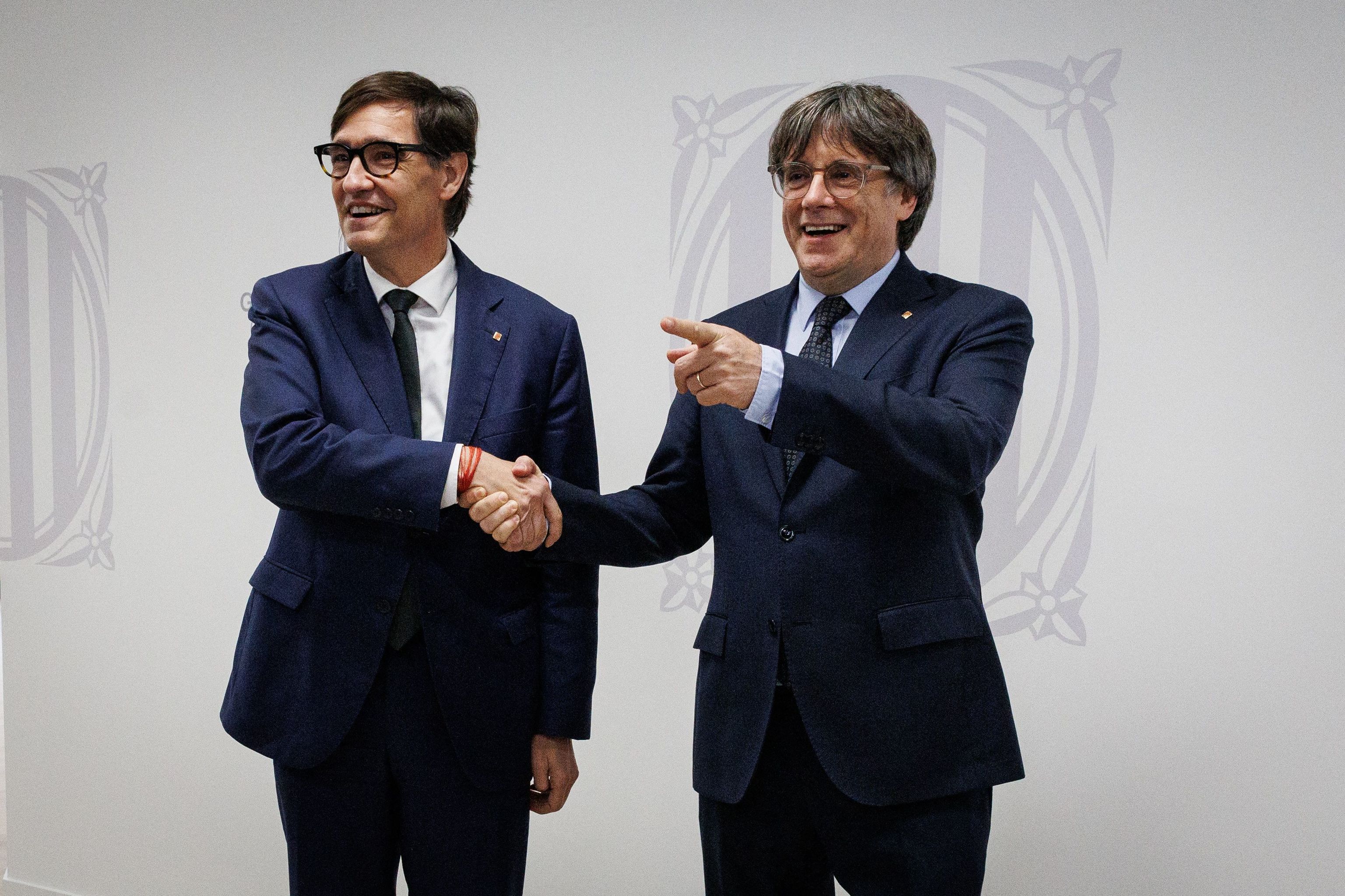 | Cataluña. Illa rehabilita al prófugo Puigdemont con una reunión en Bruselas y éste le exige la amnistía: "No vivimos en la normalidad" VÍCTOR MONDELO | | | |