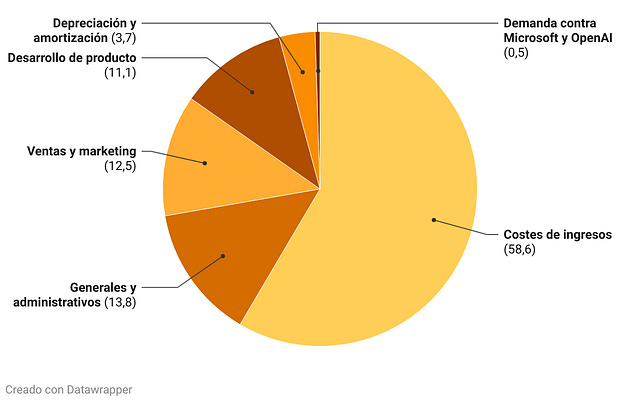 NEGOCIO ➭ ¿Cómo gasta su dinero The New York Times?Análisis gráfico de los costes del diario con más suscriptores del mundo Una de las claves del éxito del diario The New York Times es su demostrada capacidad por seguir captando un elevado número de suscriptores digitales de pago cada trimestre. Esta semana, el Times presentará los resultados correspondientes al tercer trimestre de este año, que permitirán conocer cómo avanza hacia su objetivo de alcanzar los 15 millones de suscriptores a finales de 2027. A finales del pasado mes de junio, el diario contaba con 11,88 millones de suscriptores, y esta semana anunciará, muy probablemente, que ha superado ya los 12 millones de usuarios de pago, fundamentalmente suscriptores digitales. Para lograr atraer de manera continua a nuevos suscriptores, además de practicar un periodismo de gran calidad, The New York Times invierte importante sumas de dinero en el desarrollo y mejora continua de sus productos, para ofrecer el mejor servicio posible a sus usuarios, y a la promoción tanto de su suscripción como de su marca. Son costes que agrupa en las categorías “Desarrollo de producto” y “Ventas y marketing”, respectivamente. De hecho, el porcentaje de dinero que el NYT destina a estas partidas es considerablemente superior a la media del sector. Según un estudio realizado por la International News Media Association (INMA) que fue mencionado por su investigador en residencia y líder de la Readers First Initiative, Greg Piechota, durante una presentación que realizó en el INMA World Congress of News Media de 2024, el gasto medio en estos conceptos del conjunto de medios internacionales es de solo el 10%. En el caso del NYT, sin embargo, se acerca al 25%. Para esta edición de Tendenci@s+ he realizado un detallado análisis de los costes del diario The New York Times durante los dos últimos años y la primera mitad de 2025. Este ejercicio permite comprobar cómo distribuye sus costes el diario, en qué categorías de gastos invierte su dinero. Esto ofrece a cualquier directivo de medios una referencia con la que comparar su actual estructura de costes, lo que creo que puede resultar útil. En el conjunto del año 2024, los costes del diario The New York Times se distribuyeron del siguiente modo, en cifras absolutas y en porcentajes: Costes de The New York Times (2024) El gráfico muestra, por categorías, los costes del diario The New York Times durante el año 2024. Cifras en millones de dólares Costes de The New York Times (2024) El gráfico muestra el porcentaje (%) que representó cada categoría sobre los costes totales del diario The New York Times en 2024. Esto es lo que se incluye en cada una de las categorías de los costes: